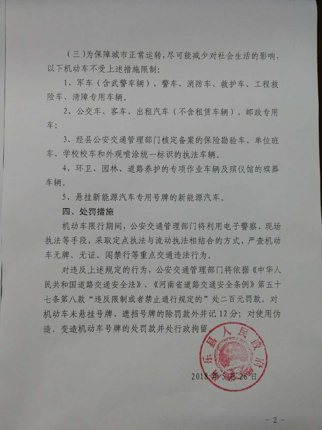 南樂縣人民政府關于實施機動車限行交通管理措施的通告